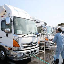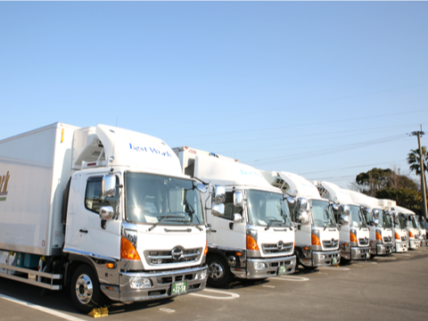 4t冷凍冷蔵車×7台、4tウイング車×2台、4t格納ゲート車×2台、3t冷凍冷蔵車×1台、3tパワーゲート車×6台 保有車両合計18台